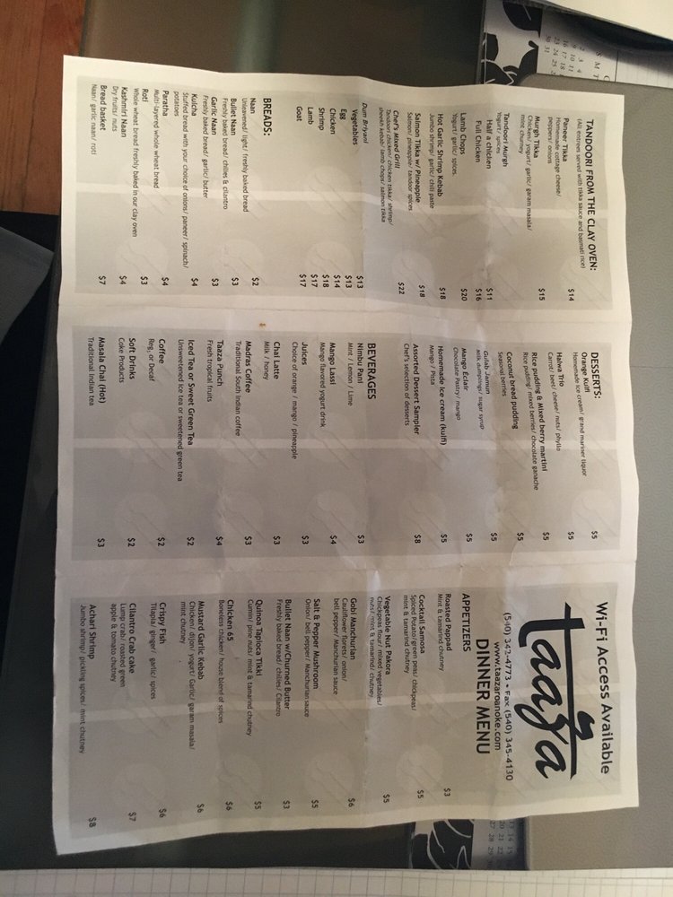 Taaza Indian Cuisine offers a diverse menu of Indian small plates and tapas, with options for breakfast and brunch. Located in Roanoke, VA, this restaurant is wheelchair accessible and offers vegan and vegetarian options. Their appetizers include Roasted Pappad with mint and tamarind chutney and the popular Chicken 65 dish. The assorted Veggie Platter and Chili Chicken small plates are also highly recommended. The restaurant provides a casual yet classy dining experience, with free Wi-Fi and a full bar for guests to enjoy. With a focus on fresh ingredients and bold flavors, Taaza Indian Cuisine is a must-try for those looking to experience authentic Indian cuisine in a welcoming setting.
